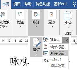 所有标记:会在文档中显示修改的原始内容以及修改后内容,并且在左侧保留灰色竖线标记。