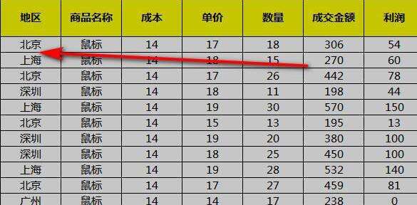5、这时候我们可以选中一栏,例如我们选择“地区”