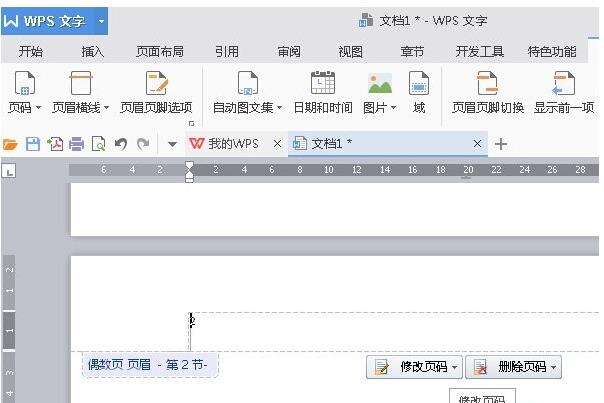 4.点击首页的页眉,然后点击“删除页码”删除第一页的页码。