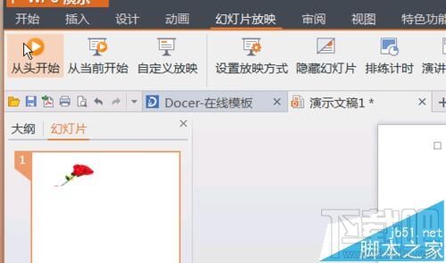 6、点击幻灯片放映选项,然后点从头开始