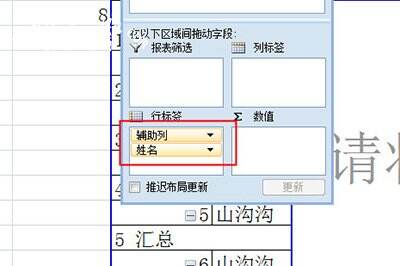 创建后,将辅助列和姓名列都拖入到下方【行标签】中。