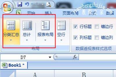 之后切换到上方【设计】选项卡,在【分类汇总】中选择不显示分类汇总,在【总计】中选择对行列的禁用,【报表布局】中选择以表格形式显示。