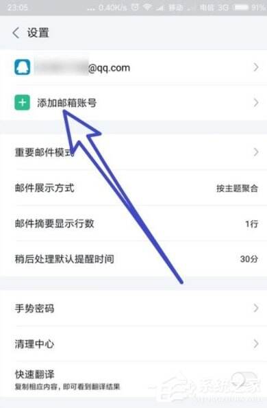 4.在设置的下拉列表中,我们点击添加邮箱账号。