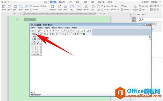 弹出公式编辑器,选择矩形的括号形式,如下图所示。