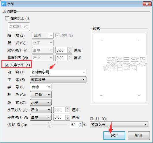 第3步、勾选文字水印,输入公司名称内容,点击确定。