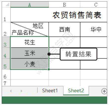 5、查看转置粘贴后的显示效果。此时可在单元格区域A3:A5中看到转置粘贴后的数据,如图所示。