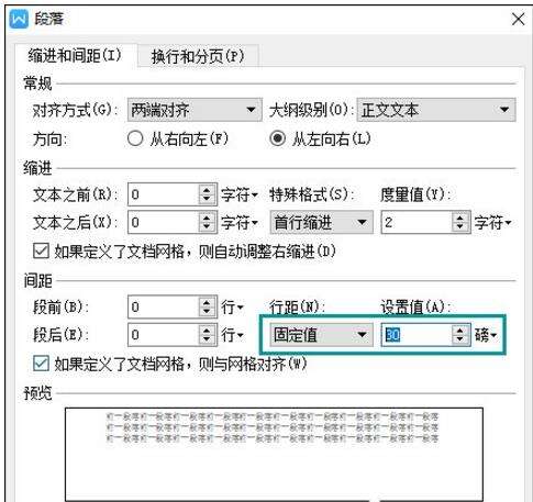 8、点击缩进和间距选项,在其内再找到行距选项,将行距设置为固定值,并设置参数,这样表格内的字体就能够完全显示了。