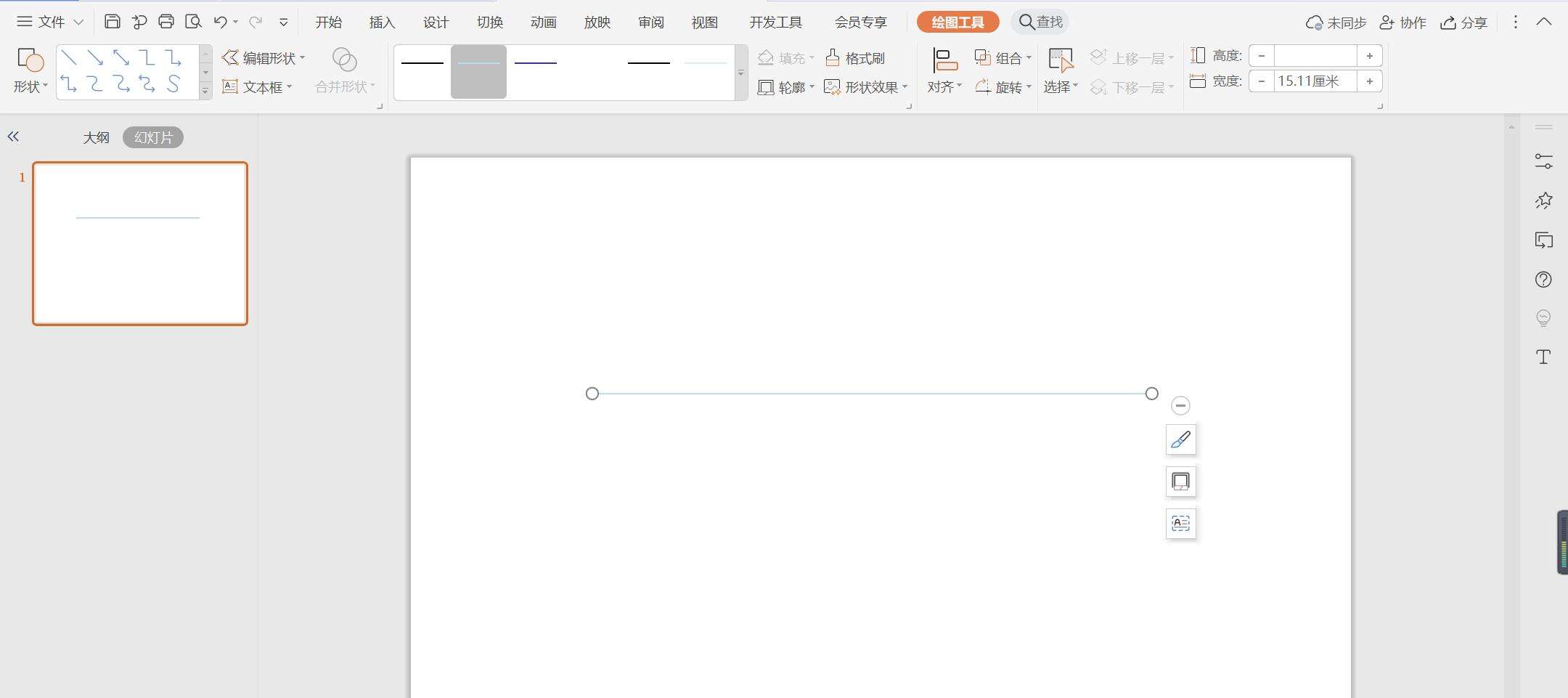 2、选中直线,颜色填充为灰色,线条宽度设置为1.5磅。