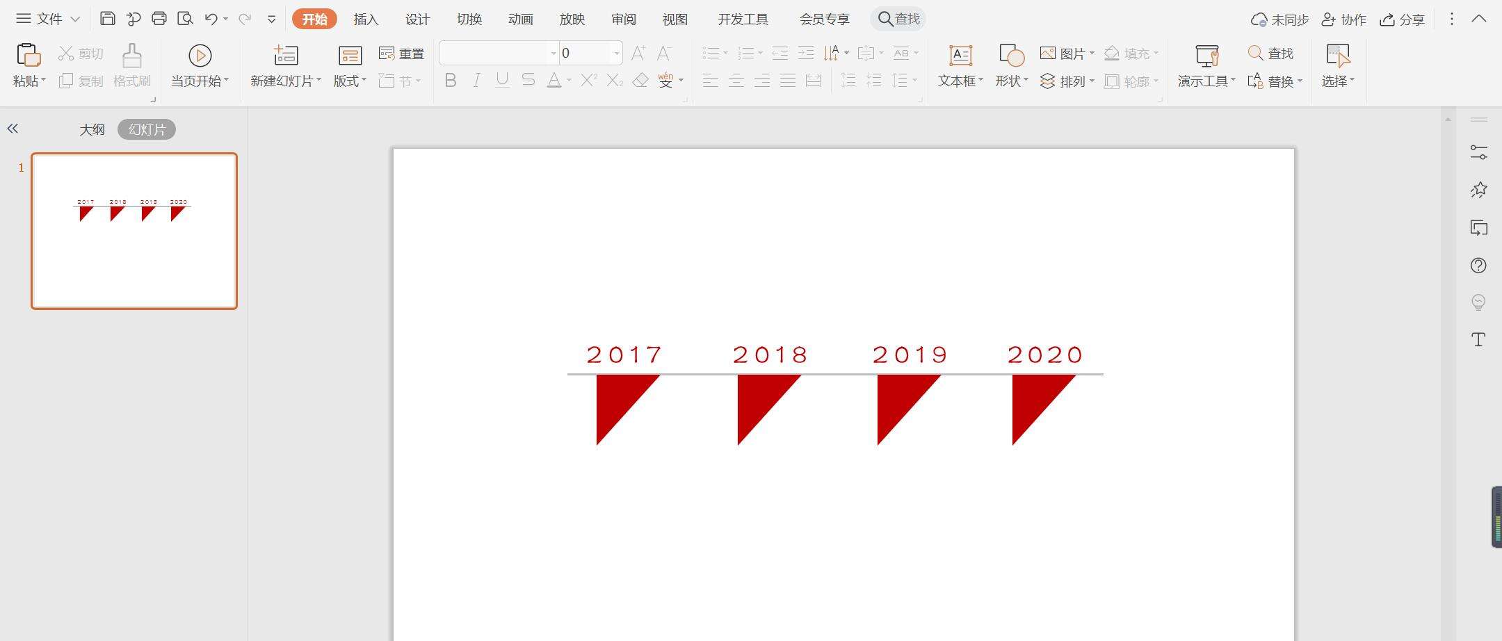 WPS PPT三角形时间轴的做法: