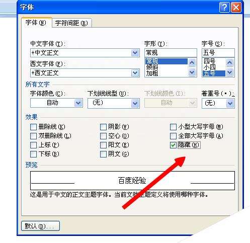 8、勾选隐藏文字