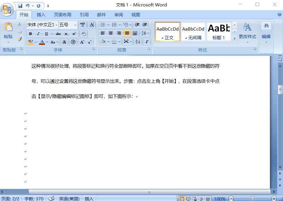 注意这个方法只适用于被隐藏的“分页符”导致的空白页,其它原因产生的空白页则不行哦~