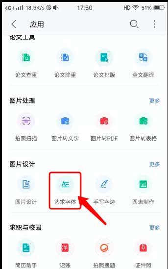 03向下一直拉,找到“艺术字体”选项,点击打开。