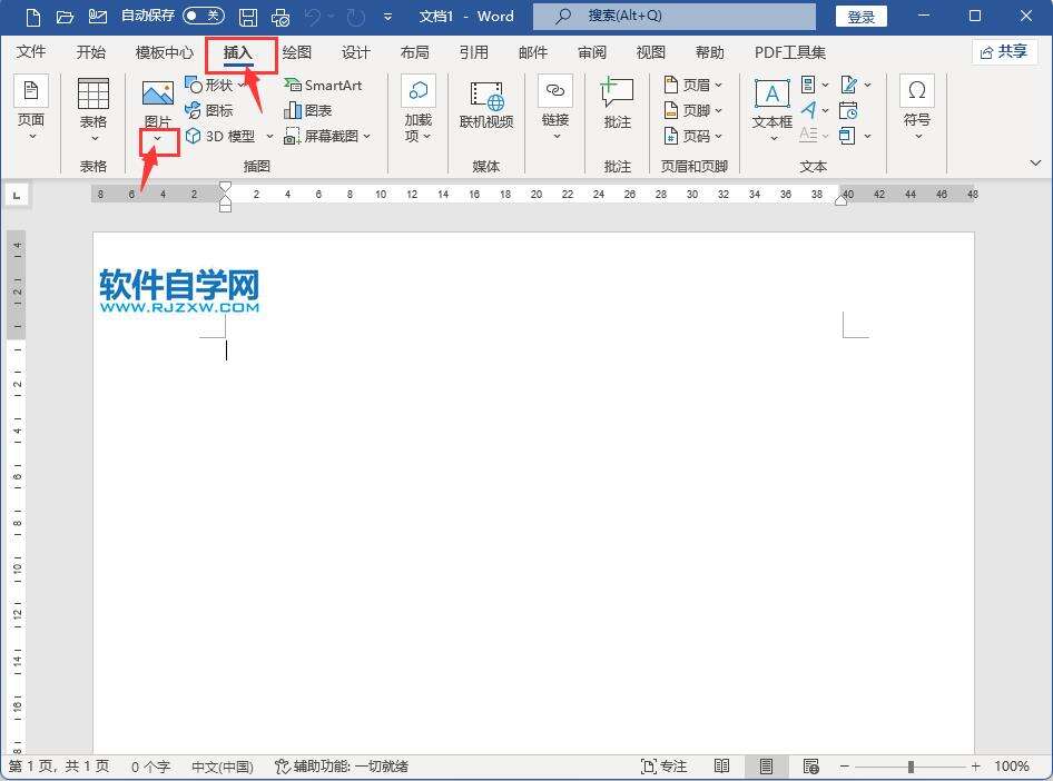 第2步、点击插入菜单,点击图片图标下面箭头。