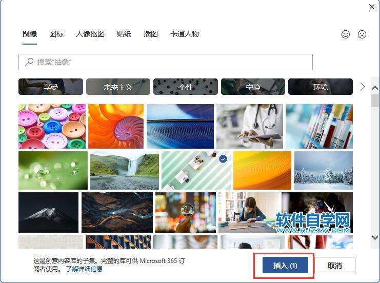 第4步、弹出图像集,选择喜欢的图片。点击插入。