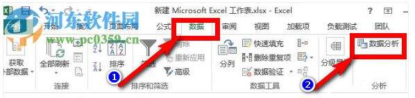 5.回到表格输入界面,在Excel上方的菜单栏中找到“数据”菜单,然后在右侧找到“数据分析”按钮,点击。