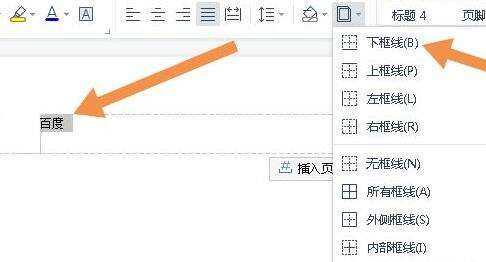 5、然后在页眉输入文字,点击下框线。