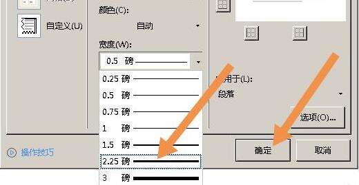 4、选择自己需要的宽度,然后点击“确定”。