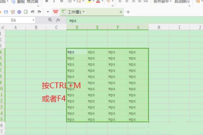 4、另外可以通过键盘快捷键,按下CTRL+M或者F4快捷键即可合并单元格。