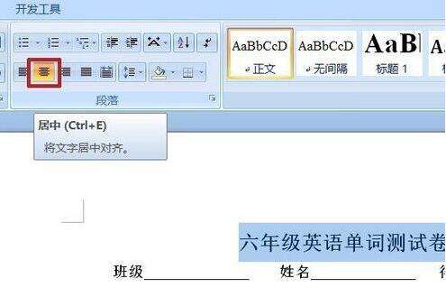 1、输入试卷标题,开始——段落中,选择居中对齐。