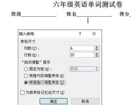 3、弹出的面板中,设置行数与列数,因为正好100个,所以列数为4,行数为25,自动调整操作选“根据窗口调整表格”。