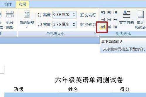7、表格文字的对齐方式,选择靠下两端对齐。