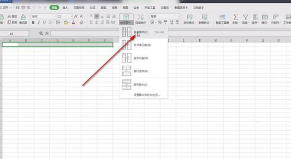 第一步,我们在空白的桌面上右击,新建一个工作表格,在第一排选择要用的几个空格,然后选择合并居中。