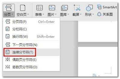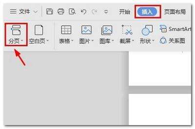 2、之后点击菜单栏中的“插入”再选择“分页”。
