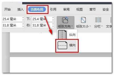 4、随后点击“页面布局”进入纸张方向,点击“横向”。