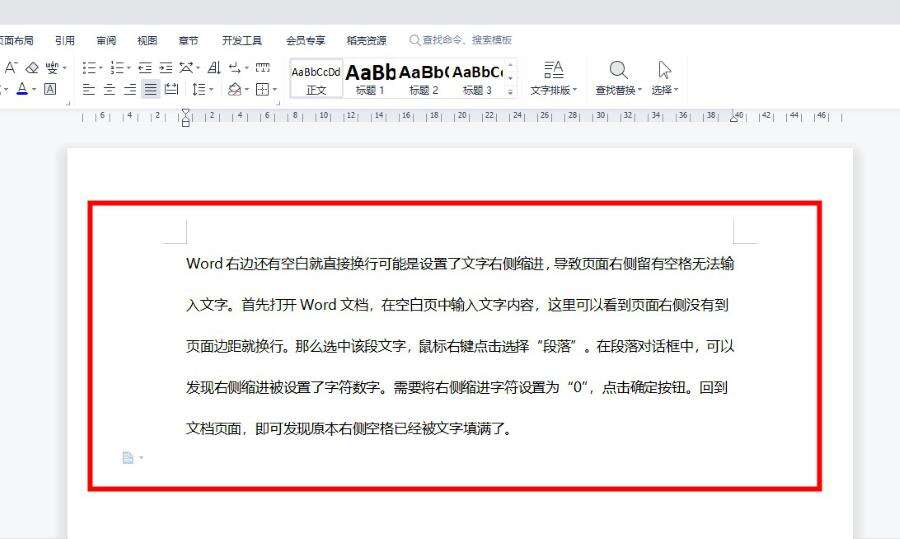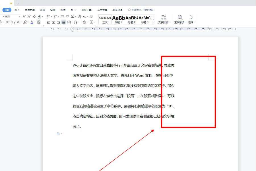 5、回到文档页面,即可发现原本右侧空格已经被文字填满了。