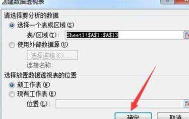3、单击插入->数据透视表->数据透视表,弹出创建数据透视表对话框,直接单击确定。