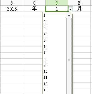 2、用数据有效性做出年、月的下拉菜单。