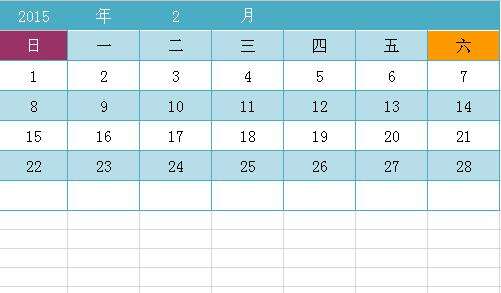 6、好了,日历就做好了,接下来就跟据自己的喜好,设置表格样式。可用条件格式标记出星期六和星期日。