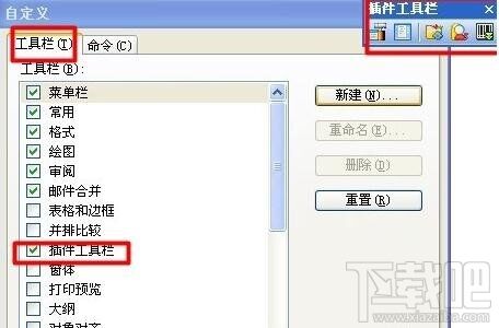 3.等待条形码安装成功后,工具--自定义--工具栏---插件工具栏,调出插件工具栏。