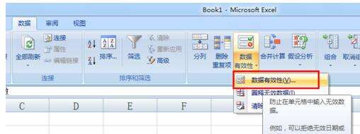2、切换至“数据”选项卡,点击“数据有效性”项。