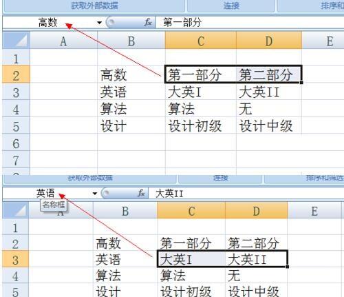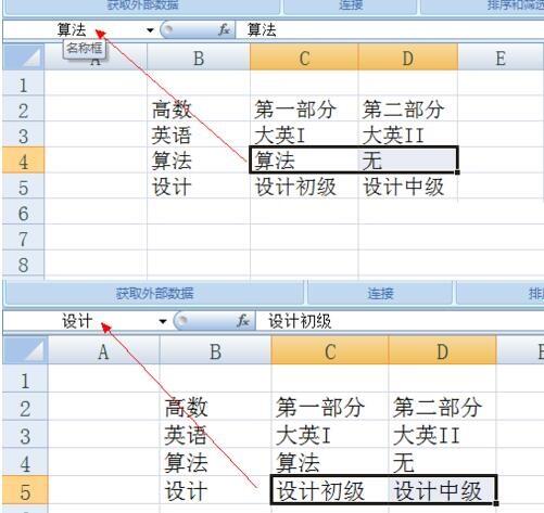 6、然后针对某一个二级下拉列表,在“名称框”输入对应一级下拉列表的名称,