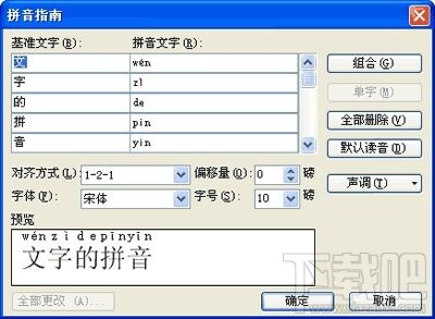 选择需要删除拼音的汉字,选择“格式|中文版式|拼音指南”菜单项,打开“拼音指南”对话框,点击“全部删除”按钮即可。