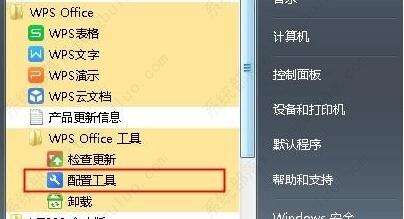 1、重新安装WPS,在开始菜单中找到WPS的“配置工具”并打开。