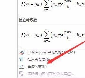 3、在弹出的下拉菜单中我们选择“墨迹公式”菜单项。