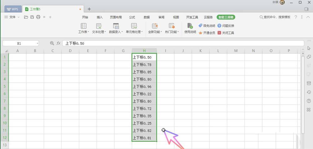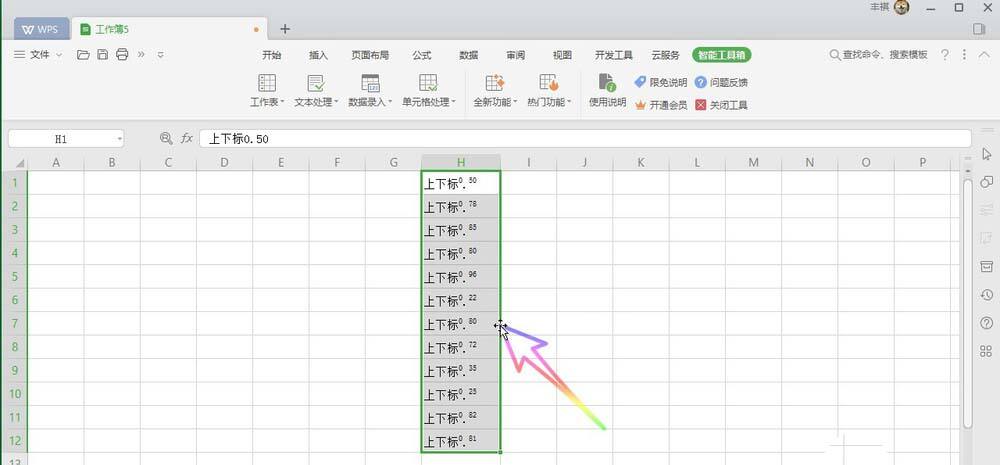 6、最后我们可以看到,单元格中所有的数字都变成了上标,如下图所示,