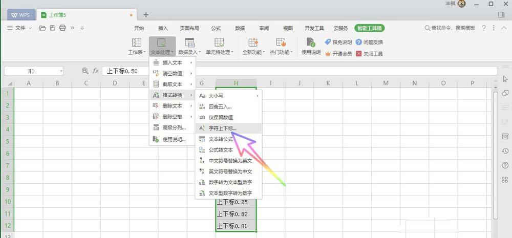 4、在下拉列表中我们找到字符上下标,点击打开,如下图所示,