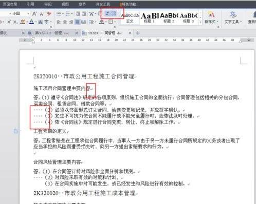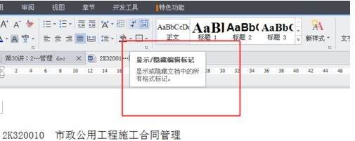3、点击显示/隐藏编辑标记,当显示/隐藏编辑标记变蓝后,段落标记还有其它标记全都显示出来了。