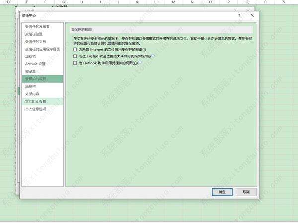 4、点击受保护的视图,将勾选的都取消点击确定即可。