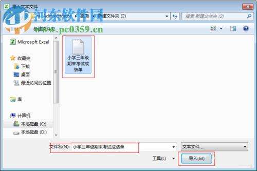 3、系统会弹出“导入文本文件”窗口,根据自己的需要打开txt文件。比如,我用来举例的是“桌面”上名为“小学三年级期末考试成绩单.txt”的文件,然后单击“导入”按钮。