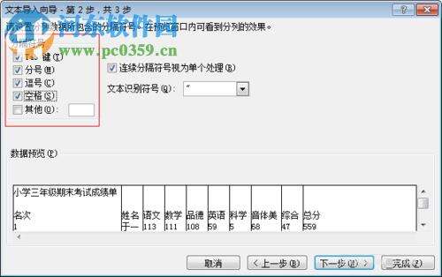 5、此时会跳转到“文本导入向导 – 第2步,共3步”的对话框界面,勾选所有可用的分隔符号,单击“下一步”按钮。