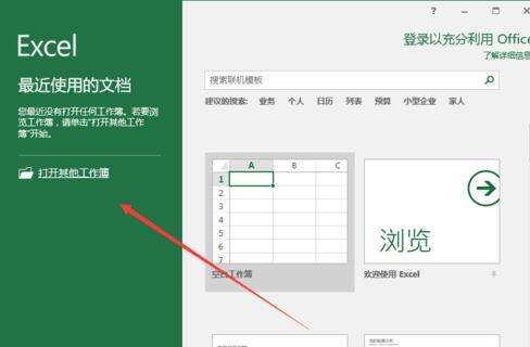 1、鼠标左键双击计算机桌面excel2016程序图标,将其打开运行。在打开的excel2016程序窗口,点击“打开其他工作簿”选项,打开需进行编辑的excel工作表。