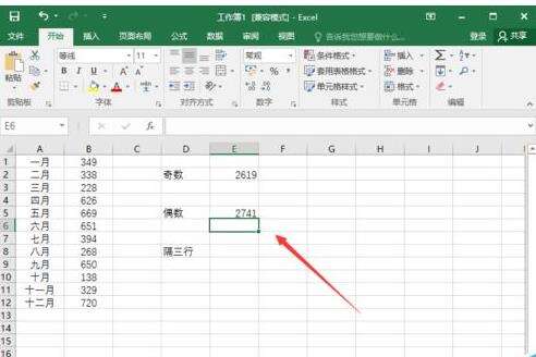 5、公式输入好之后,就可以得到偶数月之和。