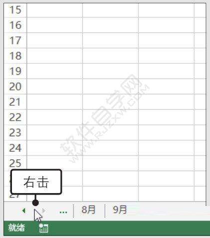 4、查看所有工作表。在工作表标签左侧右击任意一个三角形按钮,如图所示。
