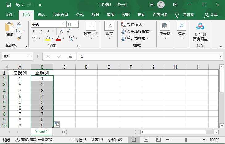 2、然后按住Ctrl键,拉动数字1所在单元格右下角的【填充键】,选中其他空白单元格;