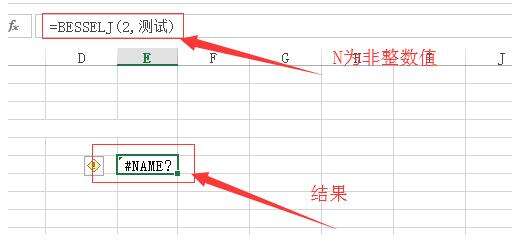 2、若是 N 是非数值型,则 BESSELJ 将返回错误值:#NAME! 。