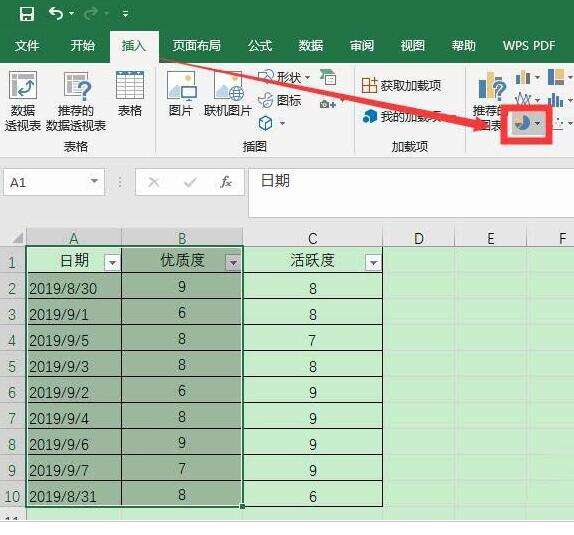 在图标中点击饼图图标